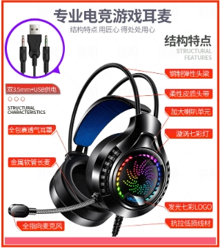 头戴式电脑耳机有线发光7.1影音USB游戏耳麦