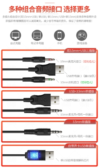 颜色黑色七彩光【双3.5mm+USB供电版】,白色七彩光【双3.5mm+USB供电版】,粉色七彩光【双3.5mm+USB供电版】,黑色七彩光【单3.5mm+USB供电版】,黑色七彩光【USB7.1声卡版】,白色七彩光【USB7.1声卡版】,粉色七彩光【USB7.1声卡版】,黑色无光【3.5mm单插版】