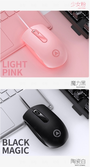 办公游戏有线鼠标 粉色加重笔记本电脑配件